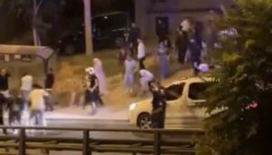 İzmir’in Karabağlar ilçesinde bir düğün salonunda iki grup arasında kavga çıktı.