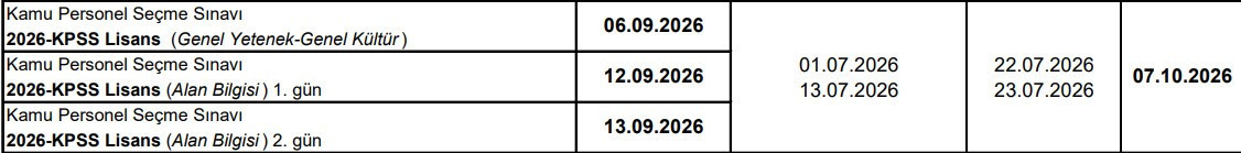 2026-KPSS Lisans (Genel Yetenek-Genel Kültür): 06.09.2026